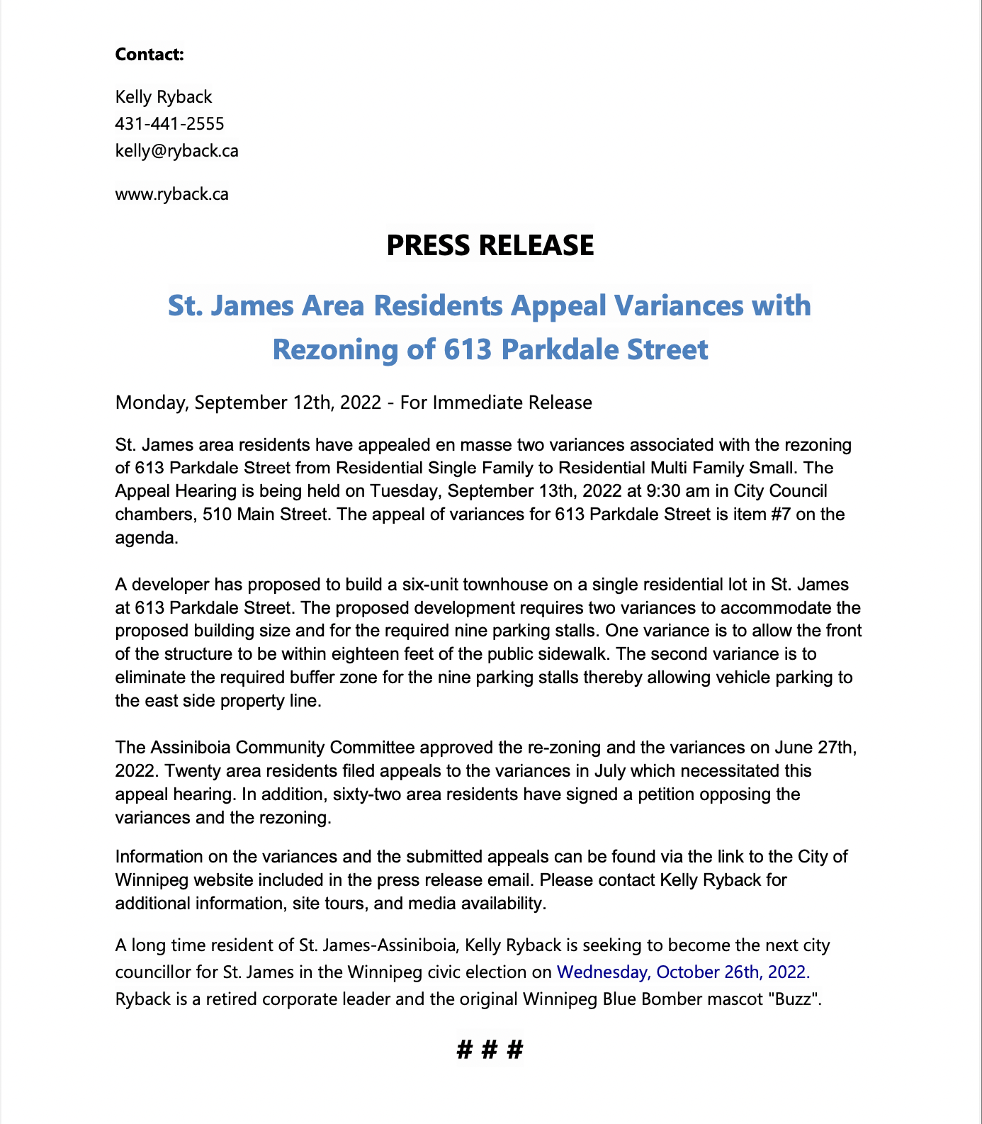 KELLY RYBACK FOR ST.JAMES